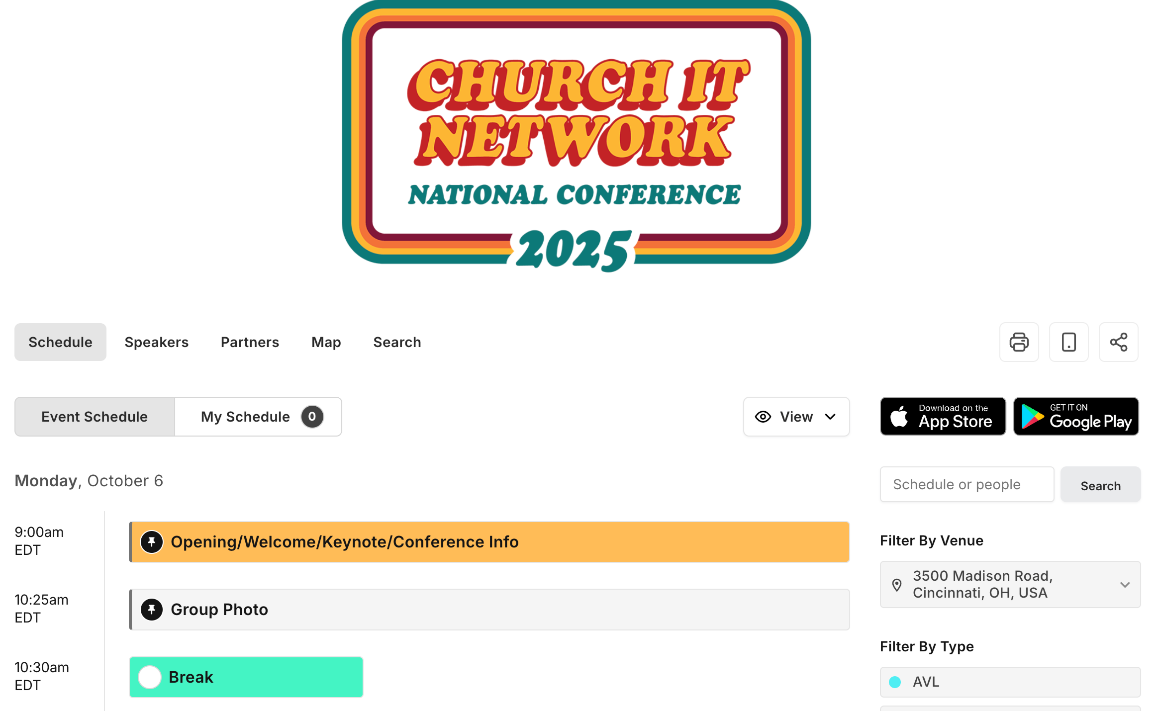 Church IT Network Conference 2025 Schedule Partner Bingo Crossroads Map Video/Photo Upload Site 2025 Partners Diamond Platinum Gold Silver